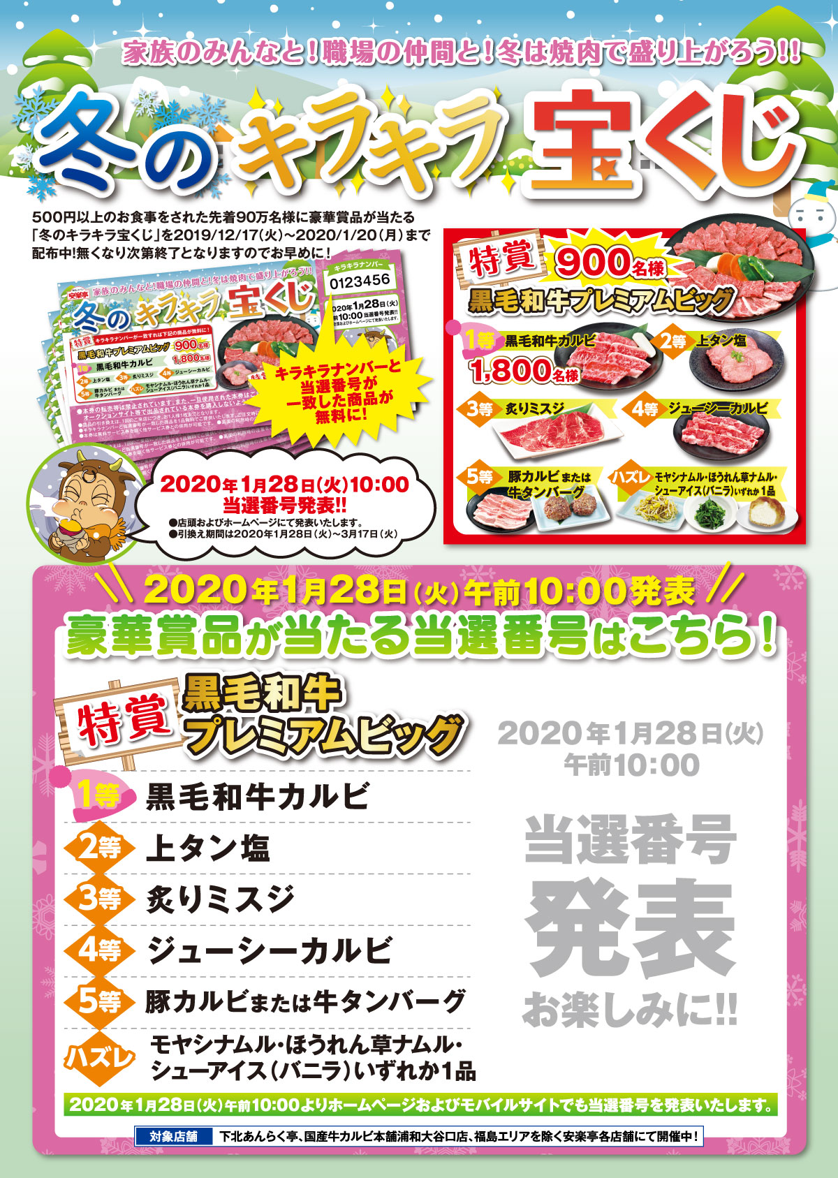 安楽亭では「冬のキラキラ宝くじ」を配布中です♪