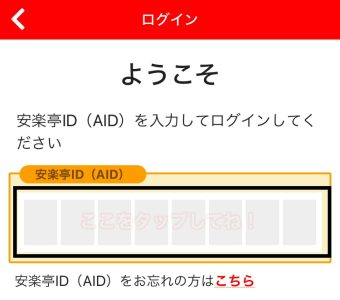 [対処方法]※事前にお客様の「安楽亭ID」「パスワード」をご確認ください。