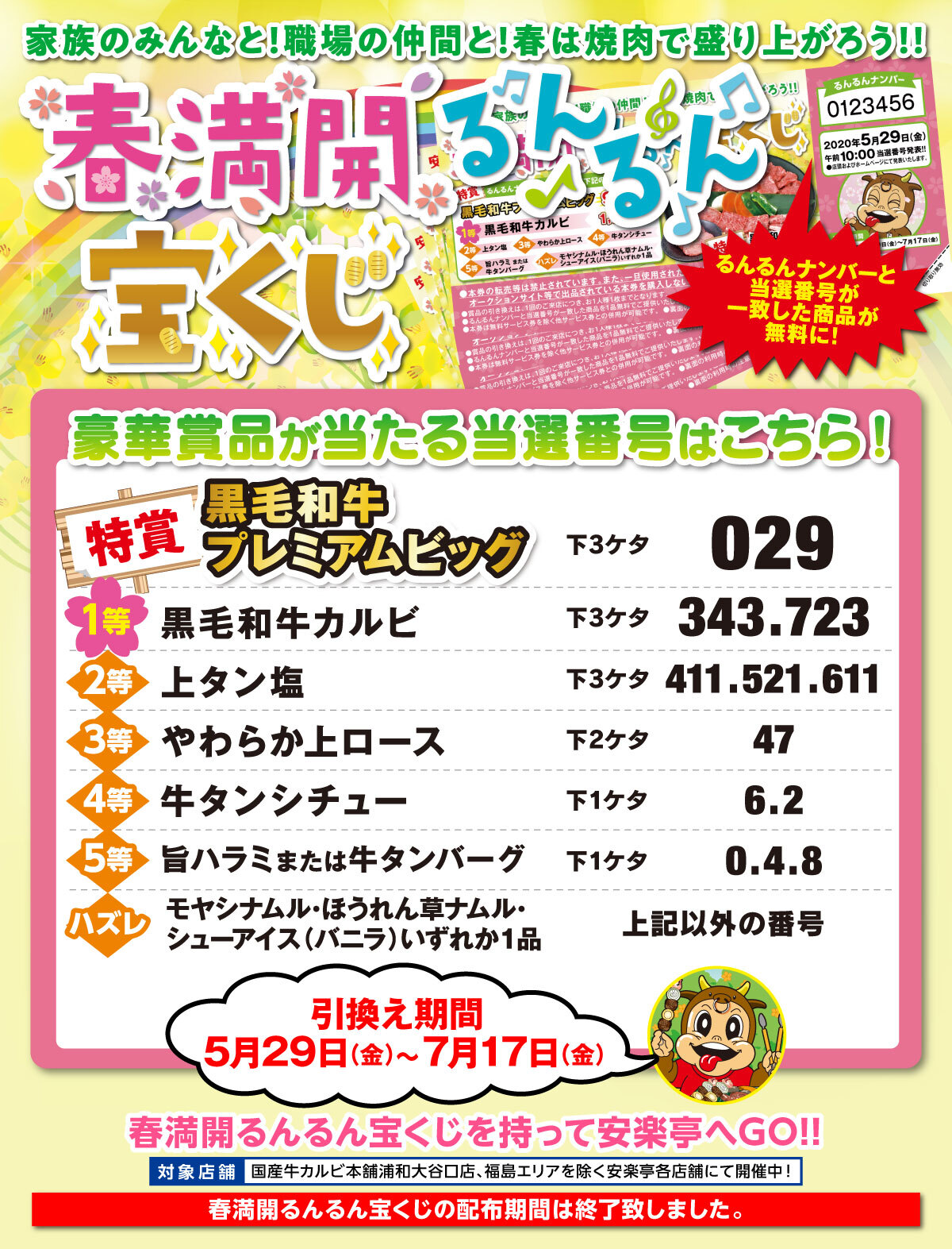 5/29(金)「春満開るんるん宝くじ」の当選番号発表!
