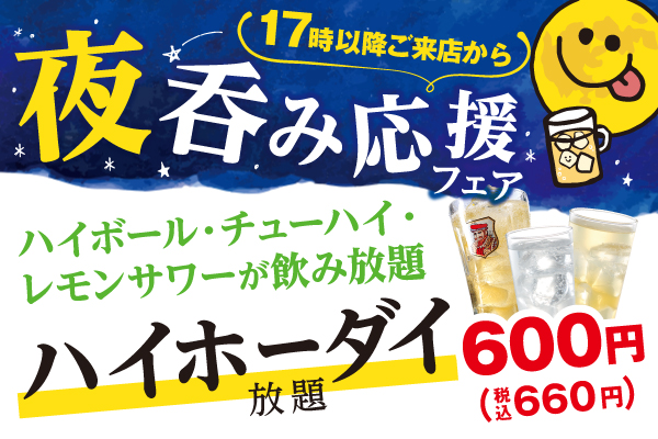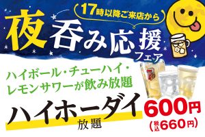 【5/27(金)17時開始!】ハイボール・チューハイ・レモンサワーが飲み放題の「ハイホーダイ」を 600円+税で販売開始